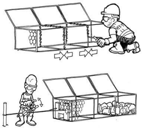 高爾凡格賓網(wǎng)被運(yùn)到施工工地時(shí),是若干個(gè)網(wǎng)格賓網(wǎng)施工圖解